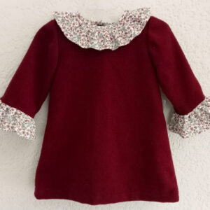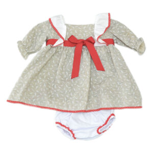 Vestido de plumas con punta roja y banda de listón rojo, con calzón